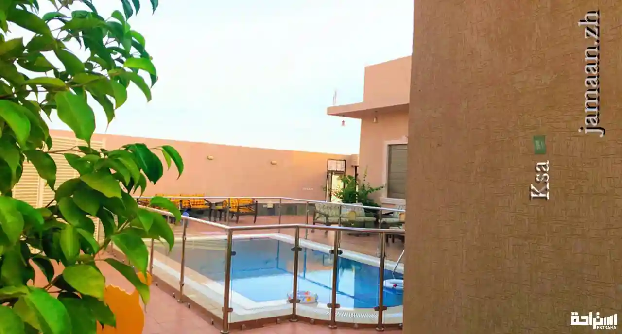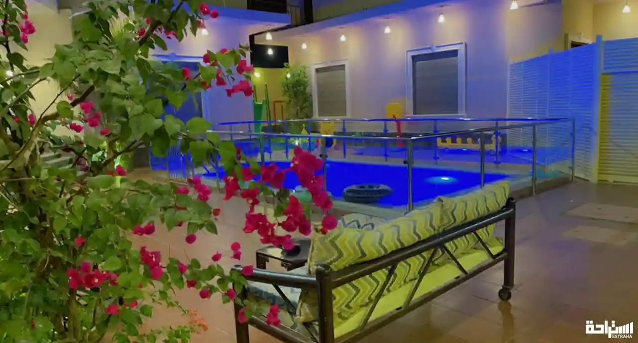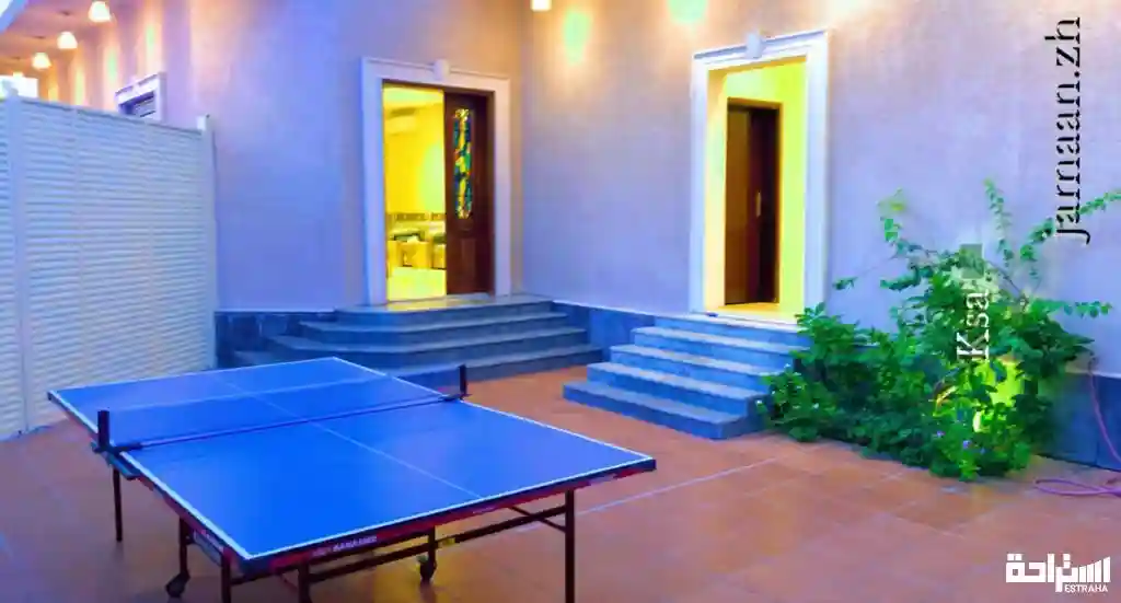مجلس رجال ، دورة مياه رجال ، حوش تنس طاولة ، مجلس نساء ، صالون استقبال نساء ، غرفة نوم ، مطبخ ، دورتين مياه نساء ، جلسات خارجية ع المسبح ، برميل مندي ، مناقل شواء ، العاب اطفال .